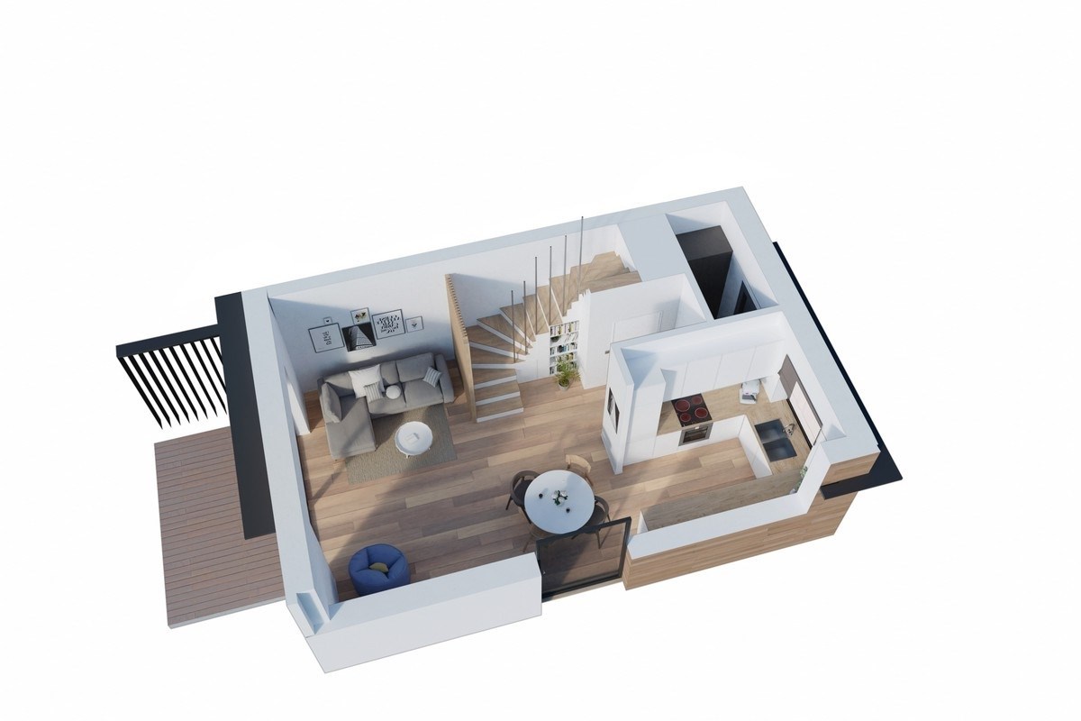 Na PARTER, o powierzchni 37,4 m2 składa się: